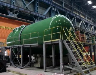 The core catcher was developed by Russian nuclear scientists and is one of the most important safety systems for cases of beyond design basis accidents. The core catcher vessel weighs over 160 tons. For its installation, a special equipment is used including a super-heavy lifting crane.